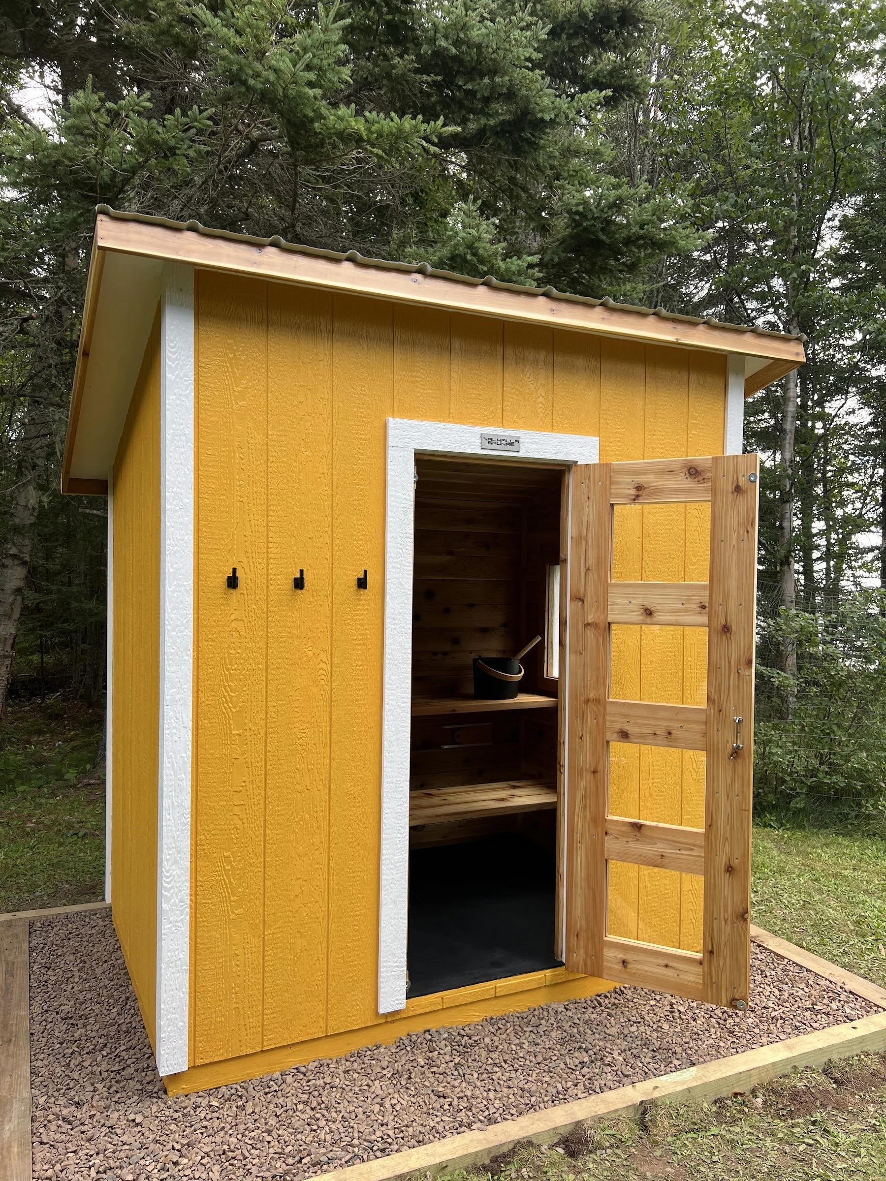 Delivery within the Twin Cities and Western Wisconsin is included. For locations outside of that area, we can accommodate you with a delivery fee. Beforehand, it’s important to prepare the site where your sauna will be placed to ensure a smooth installation. For more complex sites that require additional planning and resources, there may be an added cost to position the sauna into place.